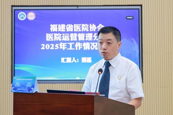 分会主任委员熊磊作《福建省医院协会医院运营管理分会2025年工作情况汇报》。熊磊主任委员系统梳理了过去一年在人才队伍建设、运营体系优化、资源配置与流程改进、智慧运营建设及协同发展机制五个方面的工作亮点,并呼吁全体委员夯实基础、持续改进,共同提升医院运营管理效能。