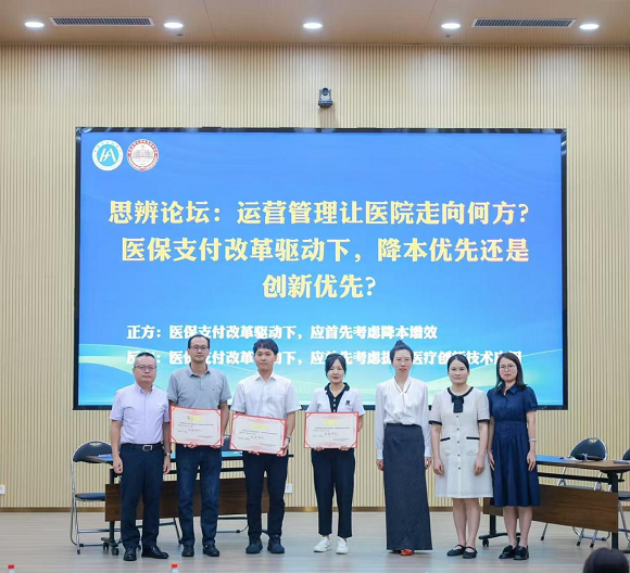 在思辨论坛环节,与会专家围绕“运营管理让医院走向何方?医保支付改革驱动下,降本优先还是创新优先?”这一主题展开了热烈讨论。现场通过观众实时投票系统,公开评选出优胜辩论团队与最佳辩手。经评选,由南平市第一医院、惠安县医院、沙县总医院三家医院代表组成的正方辩论队荣获“优胜辩论团队”,南平市第一医院林镇江获评“最佳辩手”,并现场颁发奖状,以表彰他们在政策理解与实践路径探讨中所展现的洞察力与思辨水平。