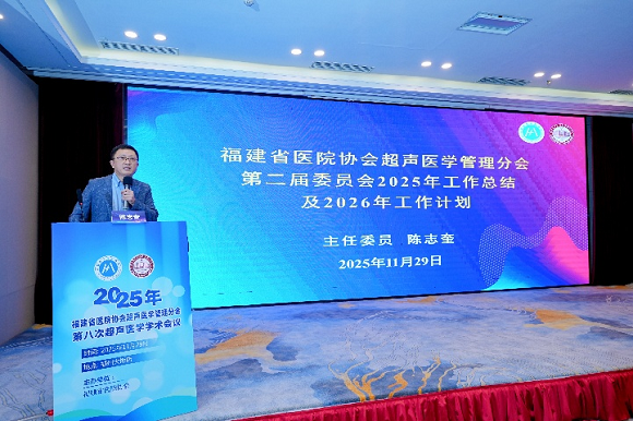 福建省医院协会超声医学管理分会第二届委员会第三次会议由分会副主任委员陈玲主持。分会主任委员陈志奎作了2025年度工作总结及2026年工作计划汇报,全面总结了过去一年在学术交流、技术推广、义诊、科研及人才队伍建设等方面取得的成果,并对分会未来工作提出展望,强调将团结全体委员,继续加强学术交流、技术推广及人才培养,推动超声医学事业的持续发展。